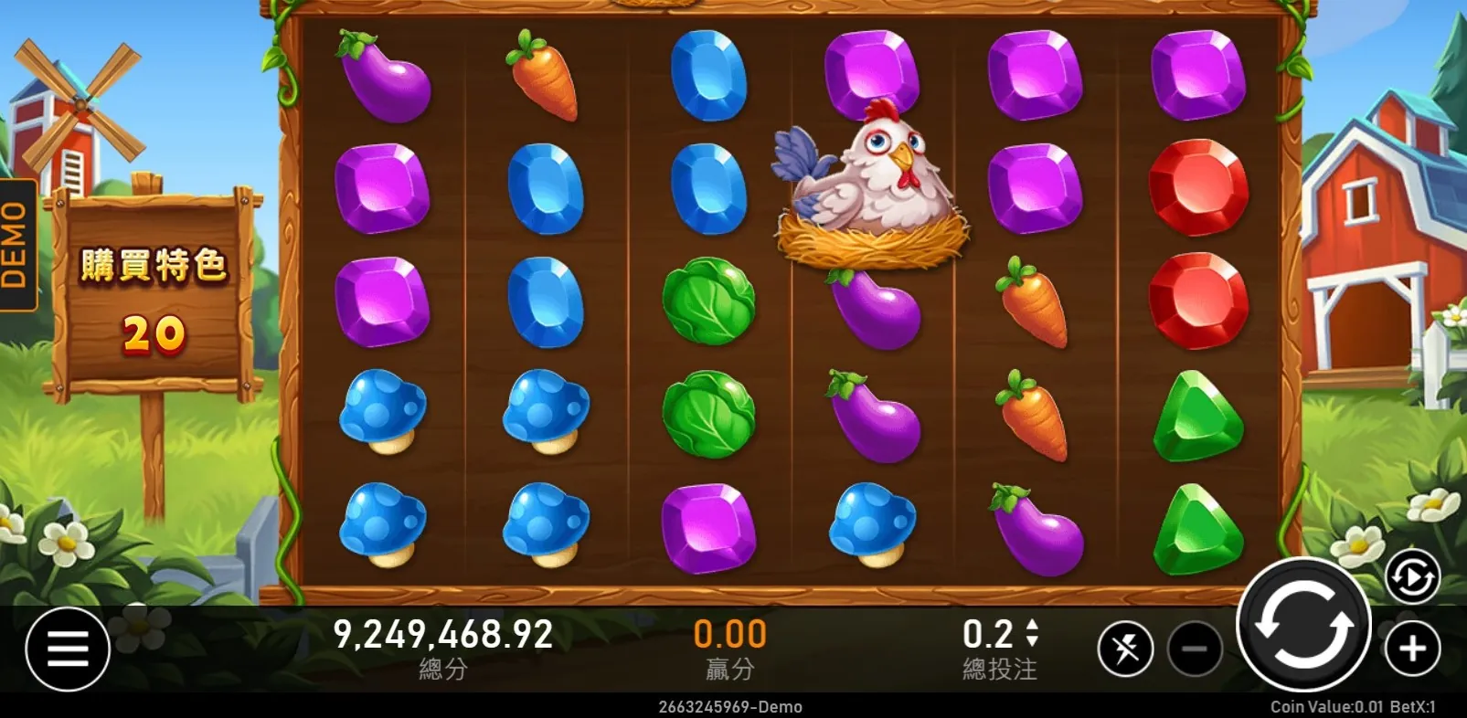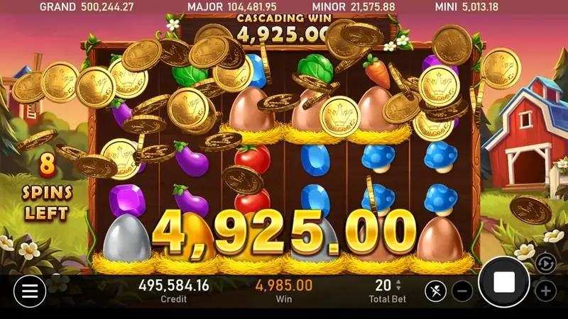 遊戲的背景設定在一個生機勃勃的農場,玩家將與可愛的動物們一起收穫豐收的獎金。音樂和畫面設計都充滿了輕鬆愉快的農場氛圍,讓人感覺像是在一個平靜的田園中放鬆心情。